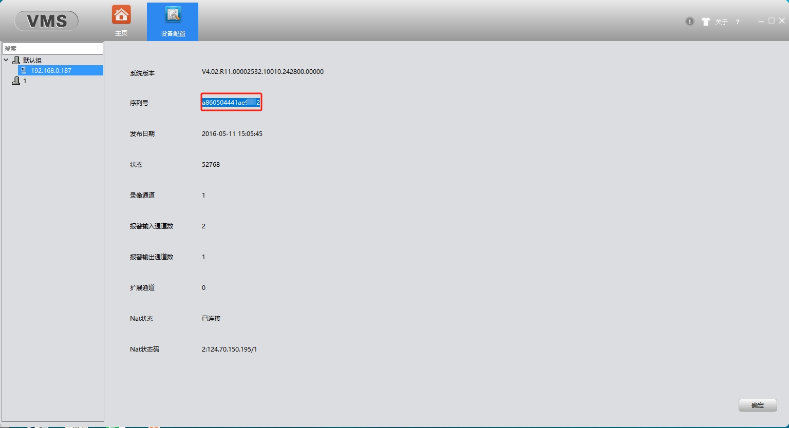 设备类型:雄迈/巨峰,IP:输入刚才设备的序列号,用户名密码按实际填写,端口默认不变。